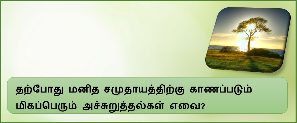 தற்போது மனித சமுதாயத்திற்கு காணப்படும் மிகப்பெரும் அச்சுறுத்தல்கள் எவை?
