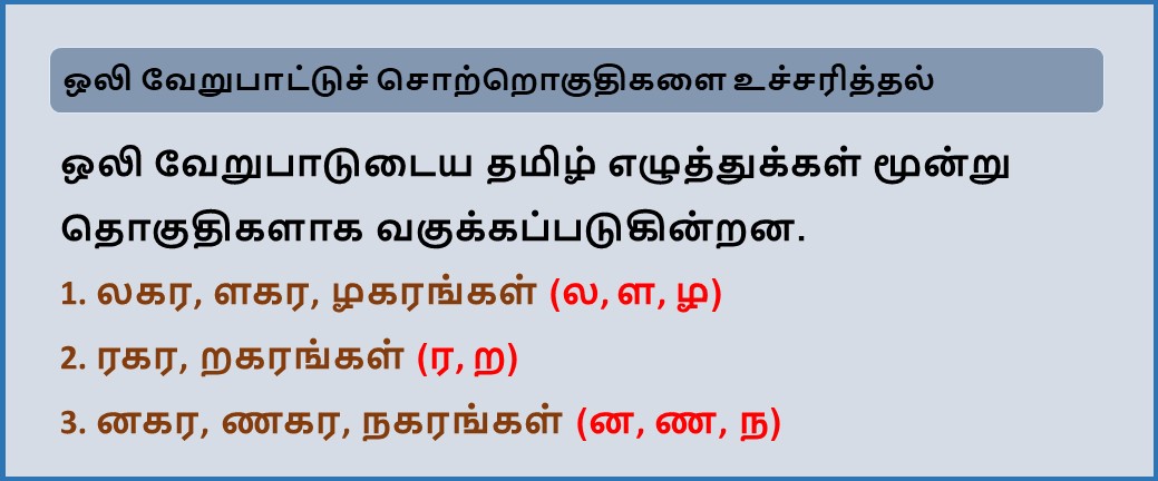 ஒலி வேறுபாட்டுச் சொற்றொகுதிகளை உச்சரித்தல்.