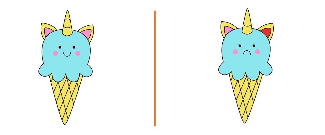 இங்கு ஒத்த தன்மை கொண்ட ஐஸ்கிறீம் சார்ந்த இரண்டு உருக்கள் தரப்பட்டுள்ளன. அவற்றை அவதானியுங்கள்.