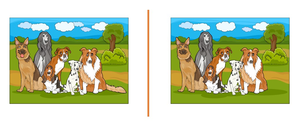 இங்கு ஒத்த தன்மை கொண்ட நாய் நண்பர்களின் இரண்டு உருக்கள் தரப்பட்டுள்ளன. அவைகளை நன்றாக அவதானியுங்கள்.