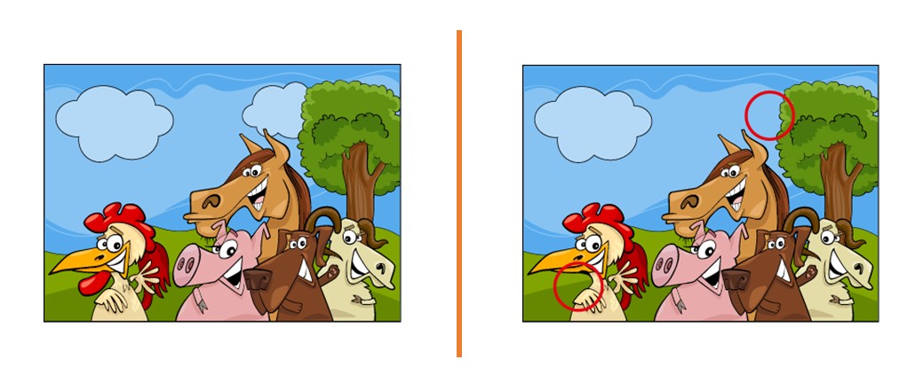 தரப்பட்டுள்ள படங்களுள் முதலாவது படத்தை விட இரண்டாவது படத்தில் இரு வித்தியாசங்கள் வட்டமிட்டுக் காட்டப்படுகின்றன.