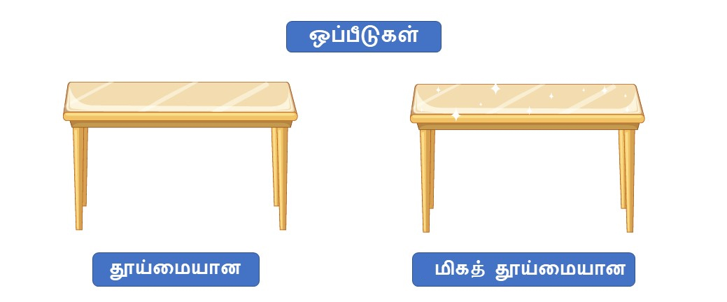 ஒப்பீட்டுச் சொற்களைக் கற்றுக்கொள்வோம்.