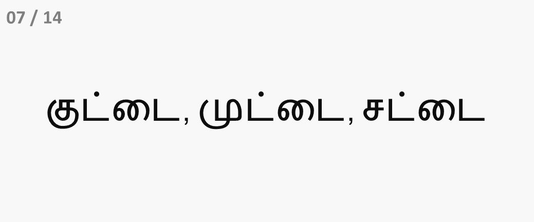 ஒரே ஓசையில் முடியும் சொற்களை உச்சரிக்கப் பழகுவோம்.